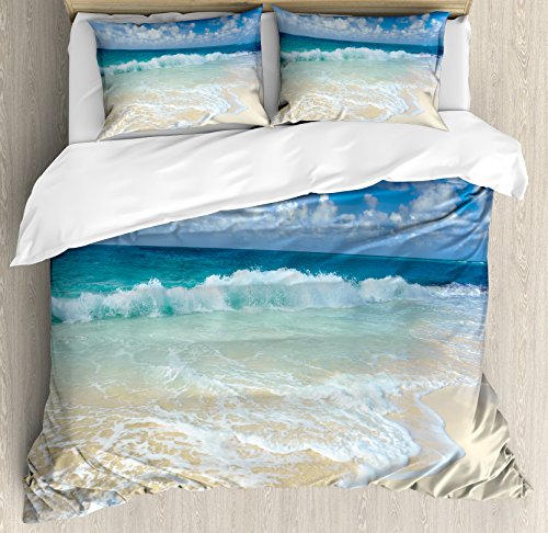 Customer reviews Ambesonne Wave Duvet Cover Set, Beach with Foamy Waves on Empty Sea Shore Holiday Theme Serene Coastal, Decorative 3 Piece Bedding Set with 2 Pillow Shams, King Size, Brown White
